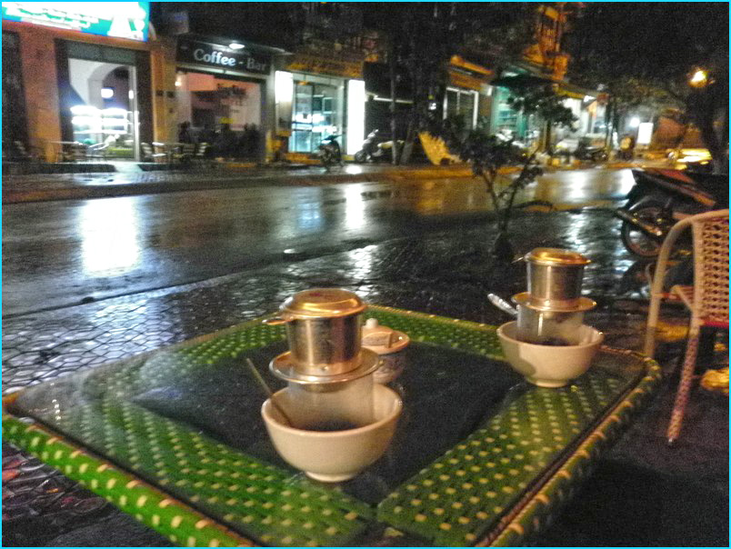 coloniale : 100% de francophones. Le guide légèrement bourré d’un couple de belges, fait un esclandre qui s’arrange grâce à l’intervention de Minh (avec qui nous aurions dû voyager). Sortons en ville prendre le café qui est bon et bainmarisé Le café ici est délicieux : c’est du 100% robusta. Il est fort, profondément noir et délicieusement amer. Un article intéressant sur le café vietnamien : http://lexpansion.lexpress.fr/economie/vietnam-l-amere-revolution-du-cafe_18777.html Note du Ouebemasteur : le lien étant brisé, il vous est proposé cet article. |