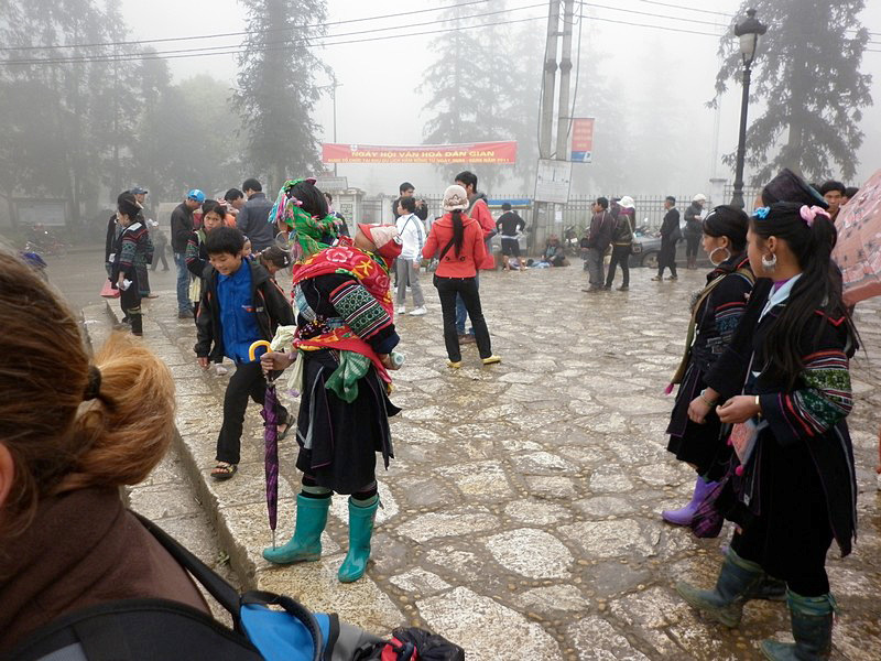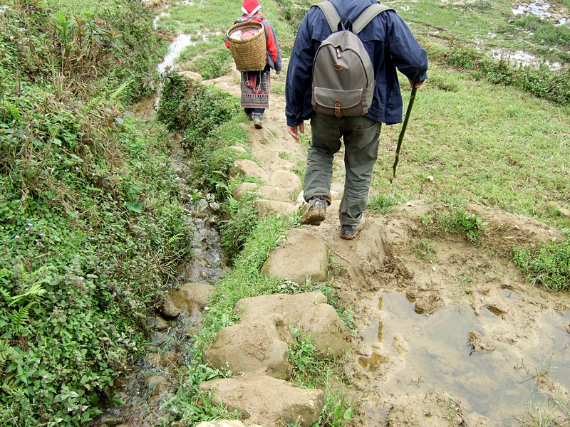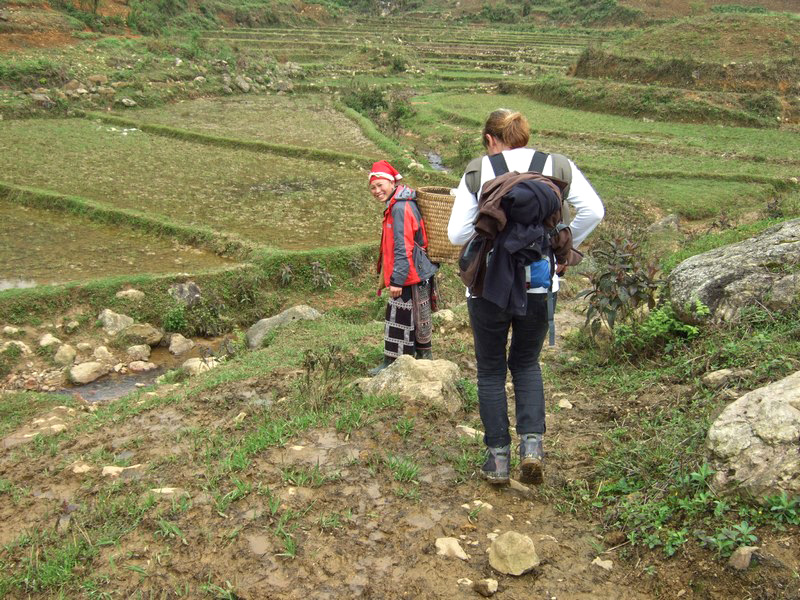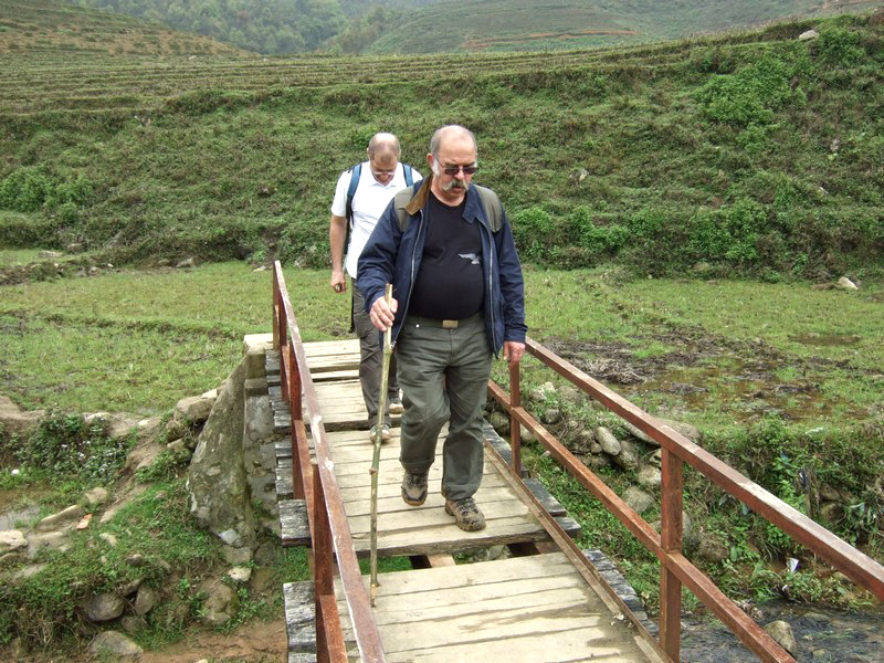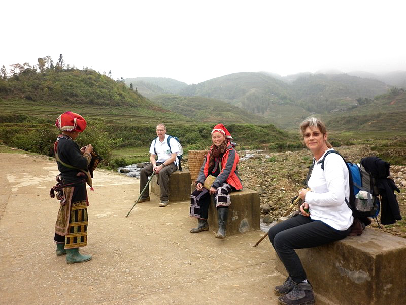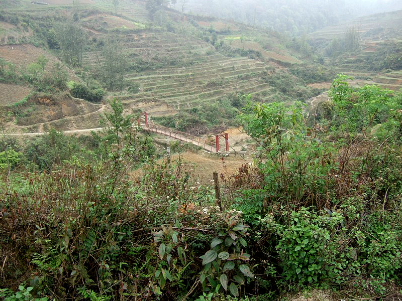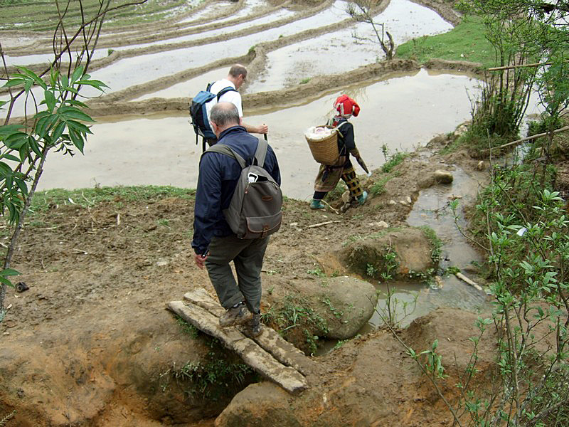 | En partant de Sa Pa, nous étions quatre. Depuis notre première halte sur le pont, une madame s’est jointe à nous, puis une autre, une autre... A l’arrivée, il y en avait quatre ! |