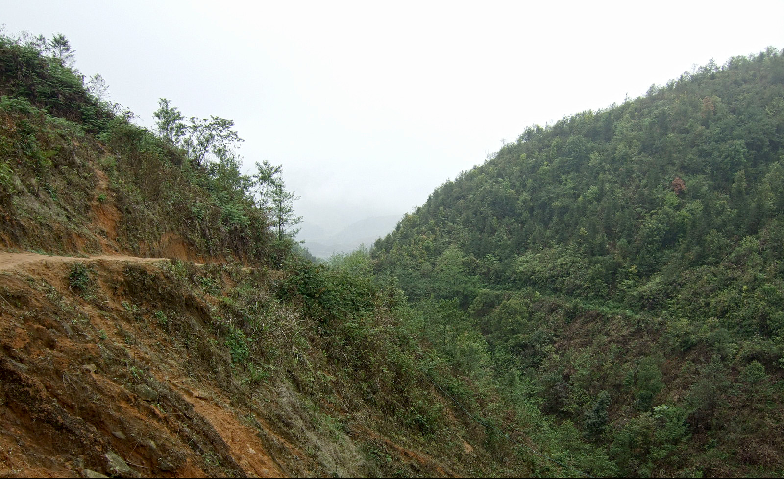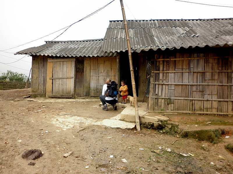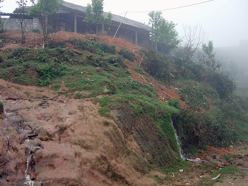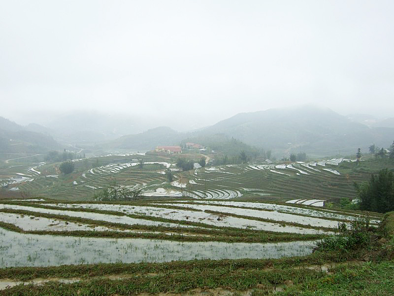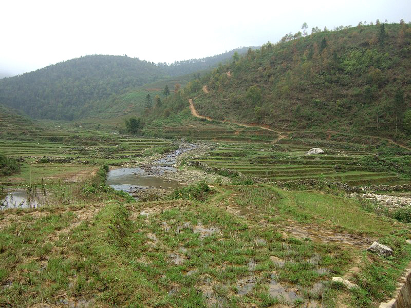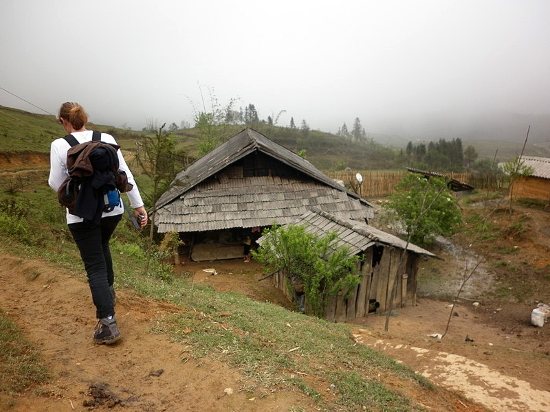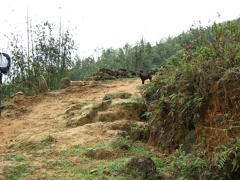 Pas seulement de la région puisqu’il a épousé la gentille Xi Quan, qui sera notre guide pour cette randonnée. Olivier parle le vietnamien et plusieurs langages locaux ! Il est convenu que nous nous rendrons (à pied) à Ta Phin, où nous serons hébergés chez la famille de Xi Quan. Philippe, sympathique touriste belge, est également de cette randonnée. Xi Quan se prononce “scie couenne”. C’est parti. Bien entendu, bruine délicate et brouillard vaporeux. |