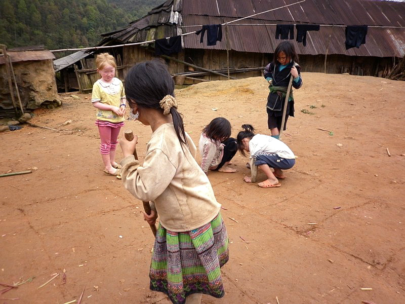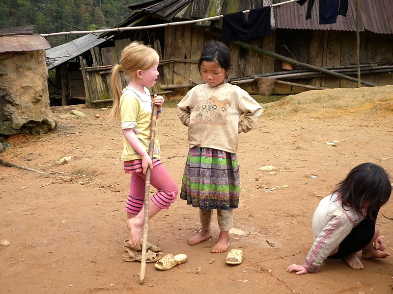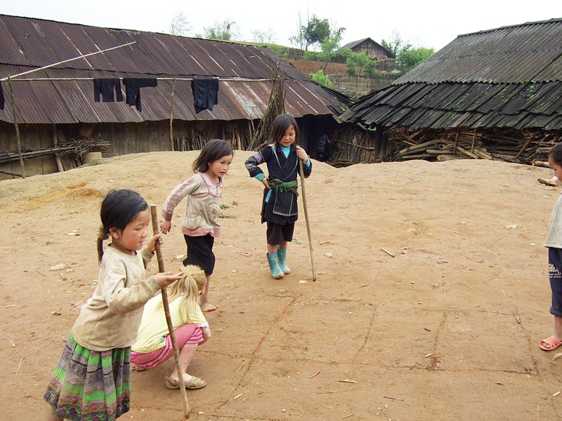 | Traversée d’un hameau. Ces petites filles n’ont pas de Playstation, pourtant elles ne semblent pas s’ennuyer. |
