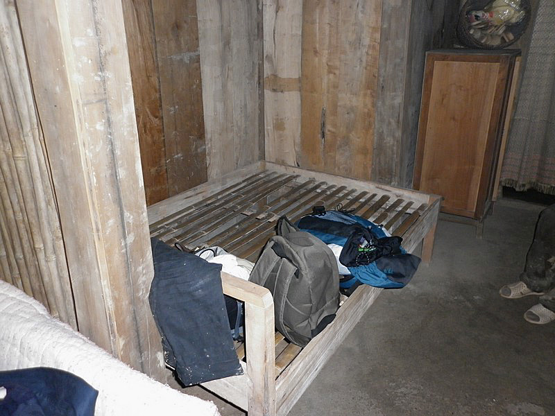 | Les sommiers sont en lattes de bambou et assez fermes. C’est merveilleux comme on dort bien dans ces lits. |