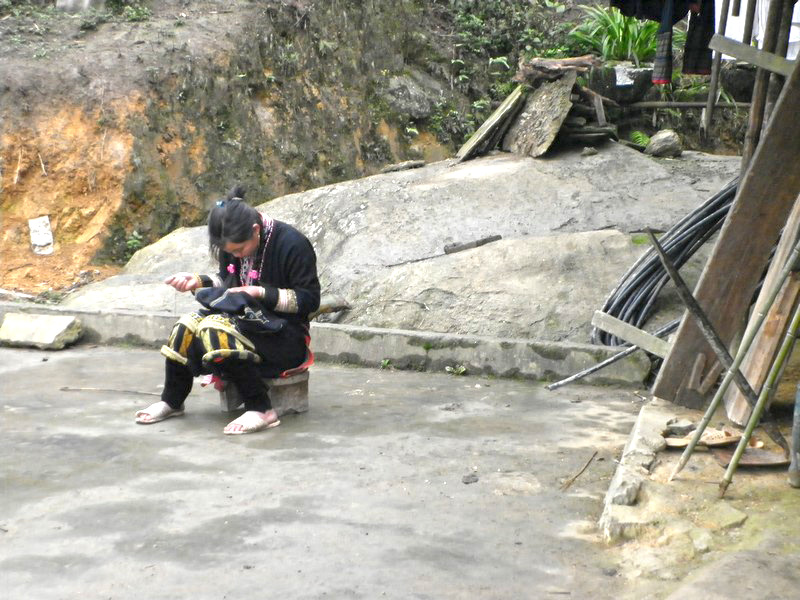 bientôt se marier) reprend son ouvrage. Ici, les filles se marient vers 15 ans. Pour la noce, elles brodent leur costume et celui de leur futur mari. |