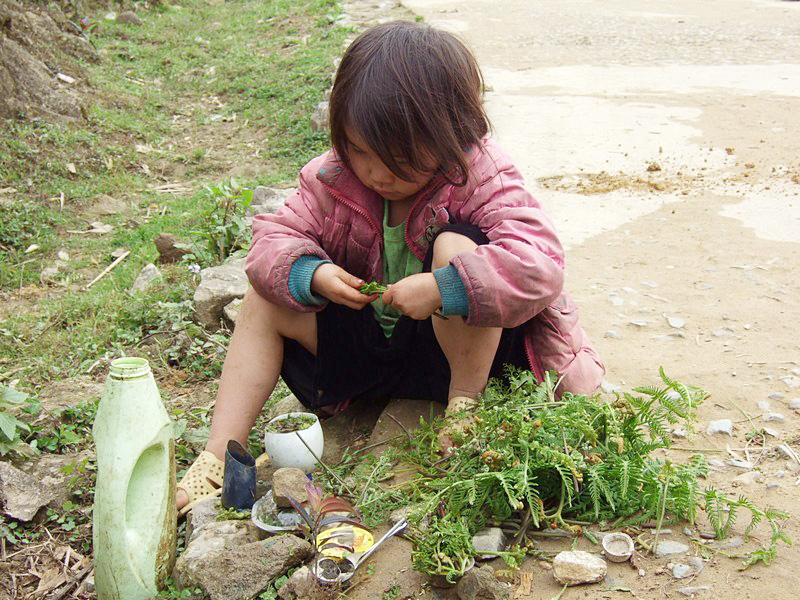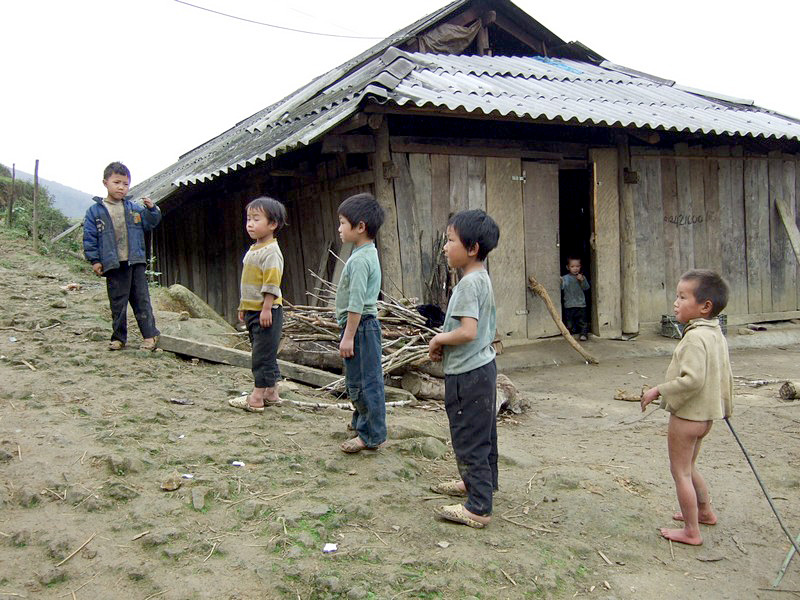 | Et des enfants. Pampers est totalement inconnu ici. Celui qui est cul nu se fait encore pipi dessus. |