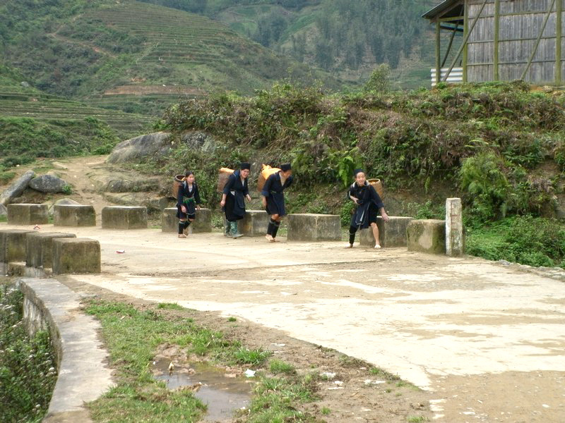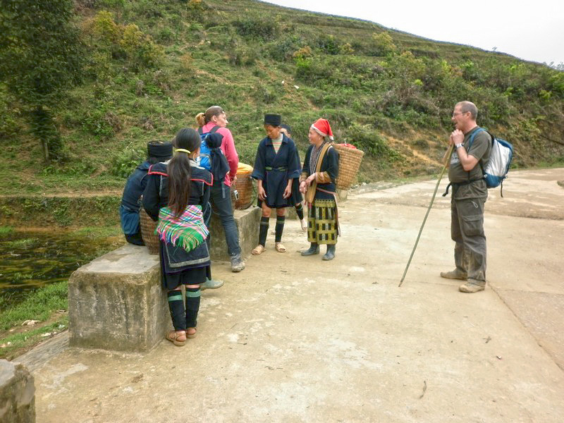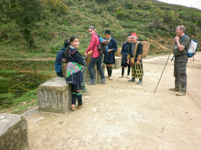 | Le petit pont semble être une halte obligatoire. Ces femmes sont des H’Mong. |